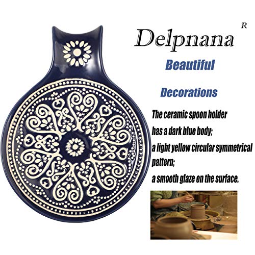 【PRACTICAL COUNTER DECORATIVE】 The spoon holder is made of ceramic, with dark blue background and light yellow patterns. The smooth enamel exudes a stylish and beautiful temperament. The ceramic spoon rack is the perfect decoration for kitchen countertops, stove tops, dining tables, coffee bars, and farmhouses.