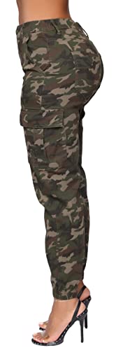 Double Denim Women’s High Waist Jogger Pants – Casual Cargo Elastic Waistband Sweatpants Tapered Fatigue with 6 Pockets