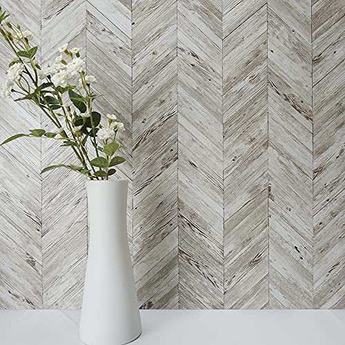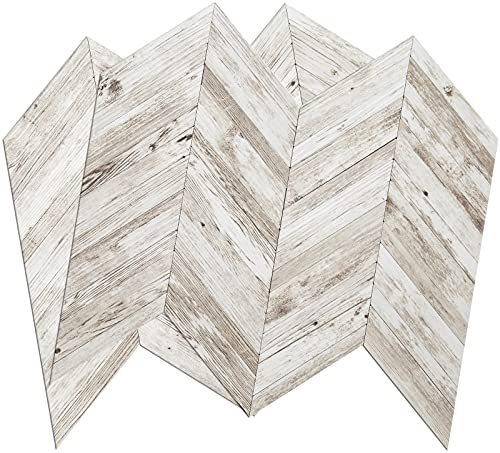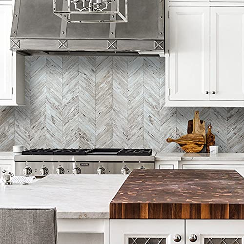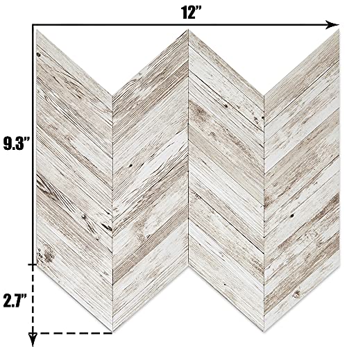DICOFUN White/Brown Herringbone Peel and Stick Backsplash, Vintage Wood Tiles Kitchen Backsplash, Pack of 10