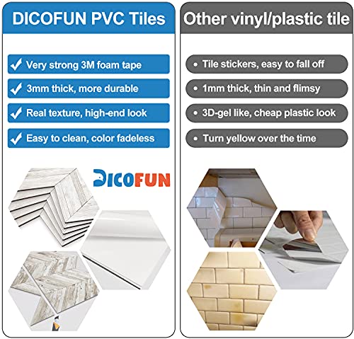 Unique diagonal design and each pattern is different, realistic 3D wood texture surface. Anti-scratch, high impact, color fadeless. You can use DICOFUN tiles to create a high-end look instead of fake finishes like wallpaper or plastic tiles.