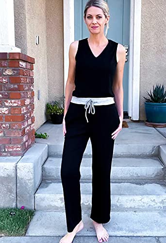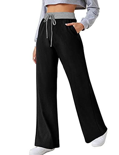 Dofaoo Women’s Wide Leg Pants with Pockets Casual Fall/Winter Sweatpants Elastic Waist with Drawstring Pants S-3XL