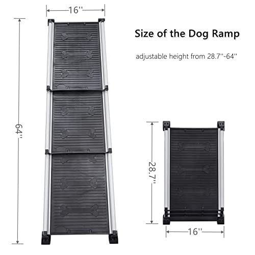 Dog Ramp, 64″x16″ Lightweight Pet Ramp, Collapsed Portable Car Ramps for Small, Medium, Large Dogs, Holds up to 185lbs, Available for Bed, Car, Truck, SUV, Anti-Resistant with Rubber Feet