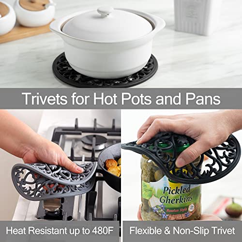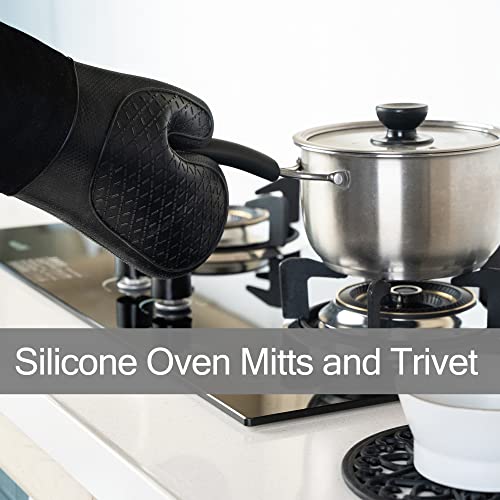 [Oven Mitts and Pot Holders 4 Piece Set]- Domonic Home silicone oven mitts and silicone trivets makes everyday cooking a lot easier. Non-slip flexible oven mitts silicone heat resistant protect your hands and trivets protect your beloved dining table.