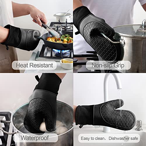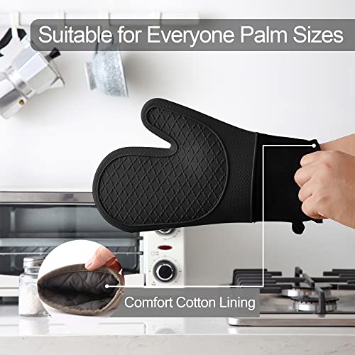 Domonic Home Oven Mitts and Pot Holders Sets, Silicone Oven Mitts Heat Resistant 600F, Soft Lining Good Grip Oven Mitts…