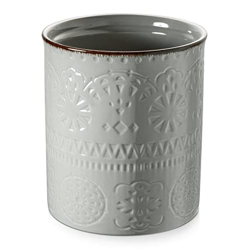 DOWAN Utensil Holder, 7.2″ Extra Large Kitchen Utensil Crock for Countertop, Farmhouse Ceramic Utensil Organizer, Anti Slip & Scratch Cork Bottom, Grey Utensil Storage for Home Décor, Graduation Gifts