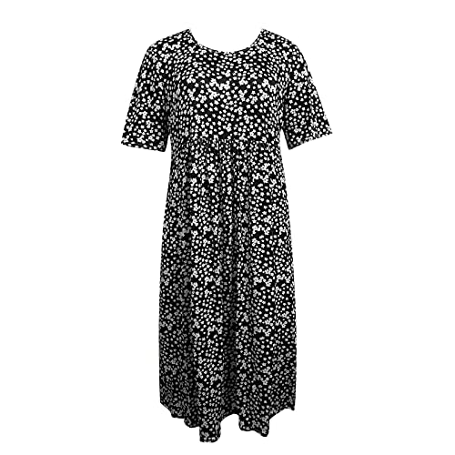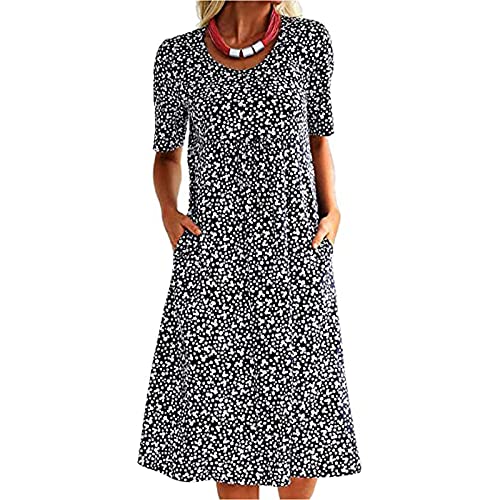Dress Sleeve Round Pocket Loose Dress Neck Short Summer Women Print Floral Boho Women’s Dress Women’s Dress