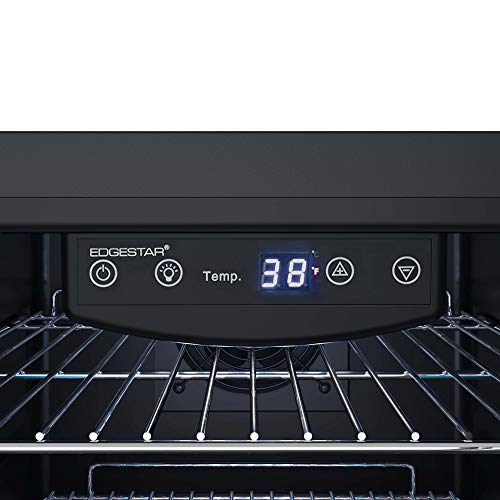Features an easy to read digital thermostat, three (3) secure metal shelves, reversible front glass door, and manually controlled soft white LED interior lighting