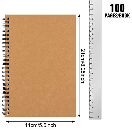 SUFFICIENT SPACE: Package contains 6 spiral notebooks, 3 with black covers and 3 with brown covers, each notebook has 100 pages of writing space, and 6 notebooks totaling 600 pages of writing space can bring you more creative space, you can record your ideas and sketches in these notebooks.