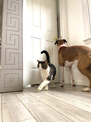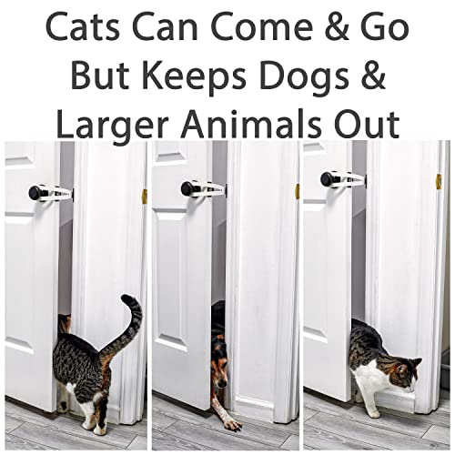 Holds most doors open 4″ Our one-piece design easily hooks onto most doorknobs and will safely hold the door, protecting your cats private space from larger animals!