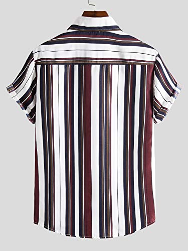 Floerns Men’s Striped Shirts Casual Short Sleeve Button Down Shirts