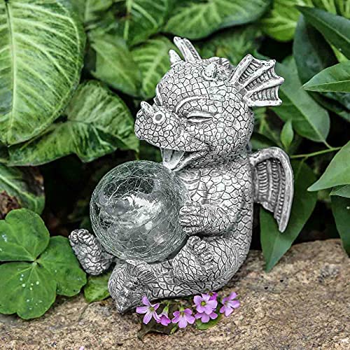 Jy.Cozy Garden Dragon Statues – Adorable Baby Resin Dragon Figurines, Holding Magic Orb with Solar LED Lights, Outdoor…