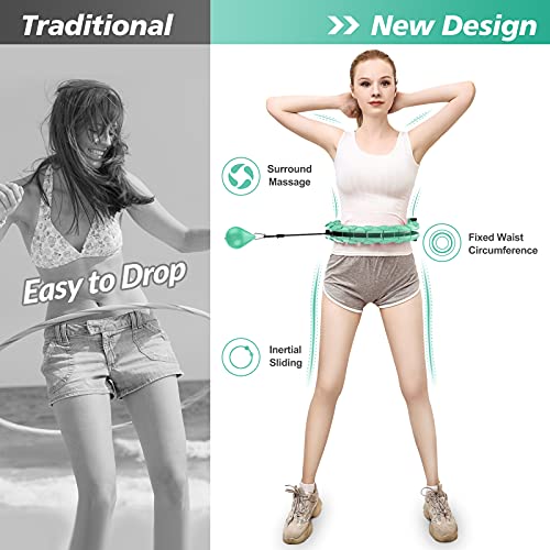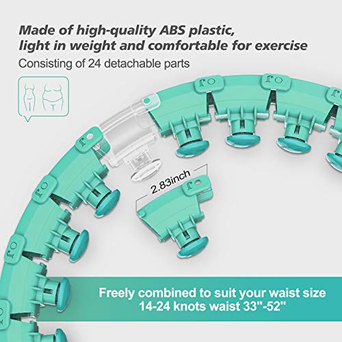 DETACHABLE DESIGN: It consists of 24 detachable parts, which can be disassembled expediently. The weighted hoop for exercise can be adjusted to 16 ( suit for 31 inch / 79cm ) to 24 ( 52 inch / 132cm ) sections according to the waist which fits all sizes. The sections and convenient safe lock are easily detached, making it easy to store.