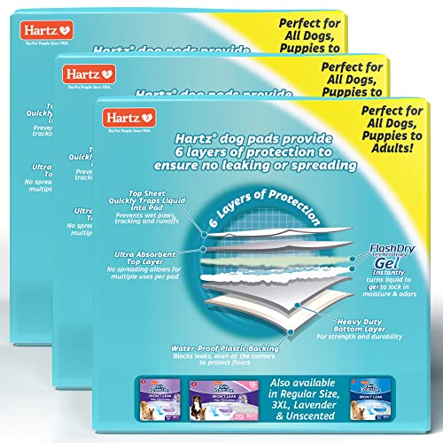 ADDITIONAL POTTY NEEDS: Hartz has a family of unscented and scented dog pads and Disposable Dog Diapers & Male Diapers/Wraps for your dog supply needs.