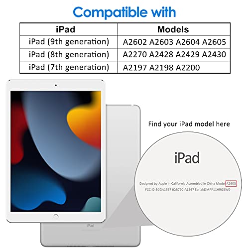for the new iPad (2021/2020/2019 model 10.2 inch). Suitable for iPad models: A2602 / A2603 / A2604 / A2605 / A2197 / A2200 / A2198 / A2270 / A2428 / A2429 / A2430. NOT compatible with any other iPad models