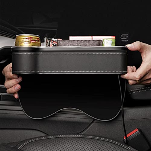 [3-in-1 Function] The latest design for this seat gap filler come with 2 USB charging port,small item storage organizer and cup holder which is the Upgraded Version.It is a very fashionable and popular for car interior accessories at present.Seat Console Organizer including 2 pack(1 pair),one for driver’s seat,another one for passenger seat.