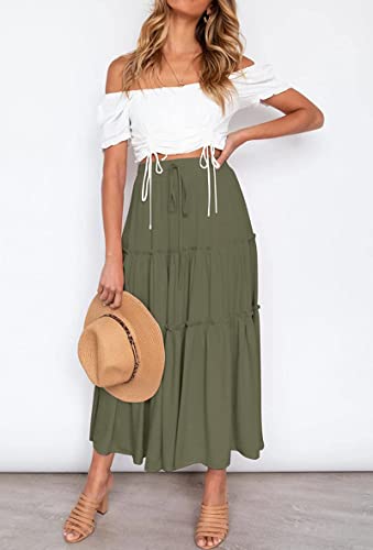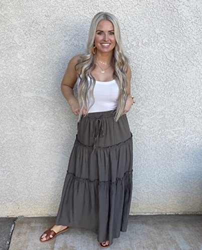 Versatile Women Skirt:Classic Solid Color,Ruffle Flowy Swing,Ankle Length,Layered Frill Trim,Elastic High Waist,Casual Loose Fit,With Drawstring,Easy Dress Up Or Down,This Maxi Skirts For Women Is Cute And Stylish