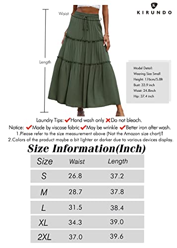 KIRUNDO 2023 Women’s Spring Summer Elastic High Waist Maxi Skirts Solid Casual Flowy Tiered Ruffle A Line Swing Long…