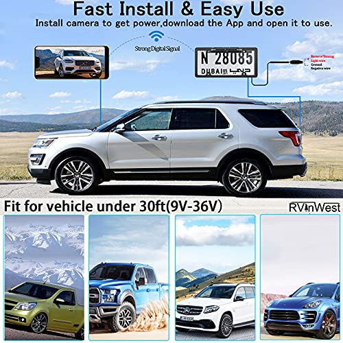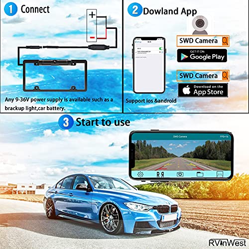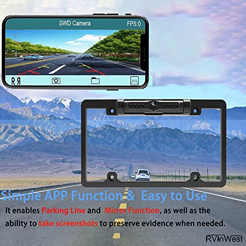 RVInWest Wifi License Plate Frame Backup Camera for iPhone,iPad,Android APP