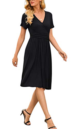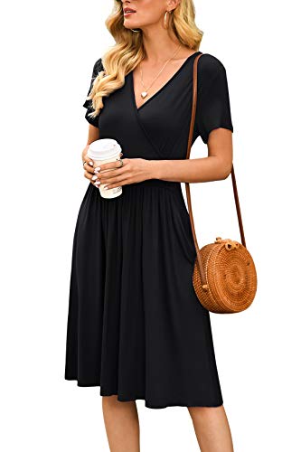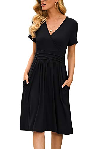 LILBETTER Women’s Summer Casual Short Sleeve V-Neck Short Party Dress with Pockets