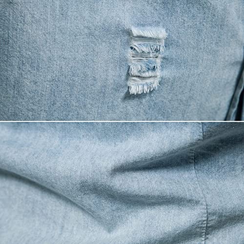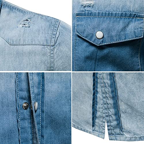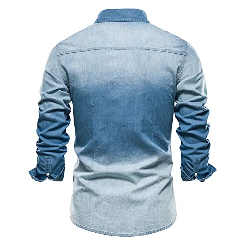 LONGBIDA Mens Denim Shirt Button Down Long Sleeve Casual Slim Fit Shirts
