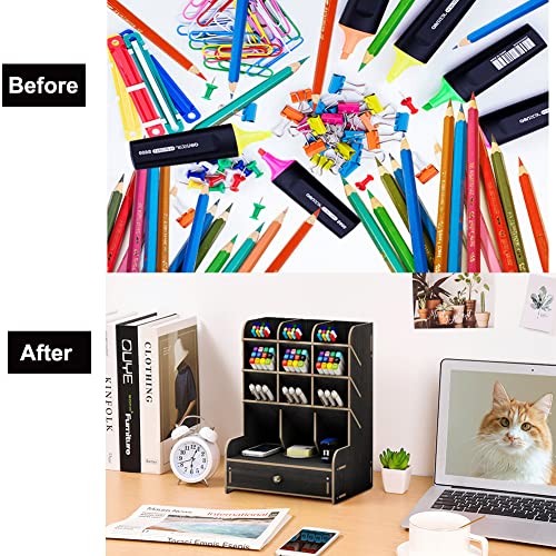 Marbrasse Wooden Desk Organizer, Multi-Functional DIY Pen Holder, Pen Organizer for desk, Desktop Stationary, Easy…