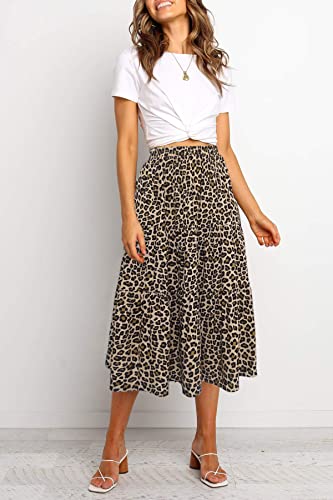 MEROKEETY Women’s Boho Leopard Print Skirt Pleated A-Line Swing Midi Skirts