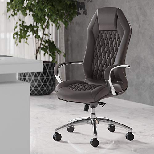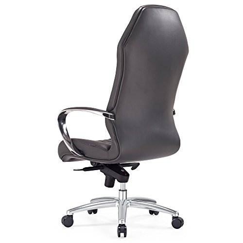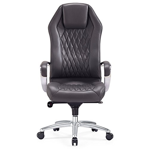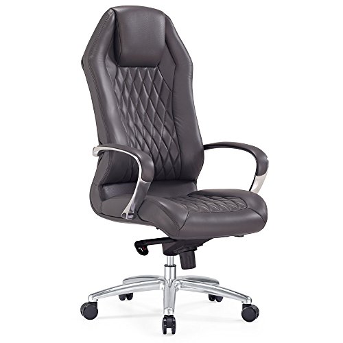 Modern Ergonomic Sterling Genuine Leather Executive Chair with Aluminum Base – Dark Grey