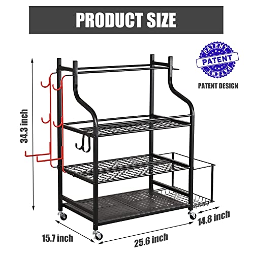 【HEAVY DUTY CASTERS】: The home gym storage rack comes with 4 strong 360-degree wheels (2 lockable) and can easy to move indoor and outdoor as well as any places you want to use.