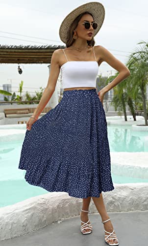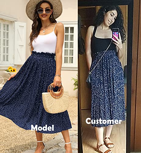 Naggoo Women’s Skirts High Elastic Waisted Casual Skirt Pleated Floral/Solid Midi Skirts with Pockets