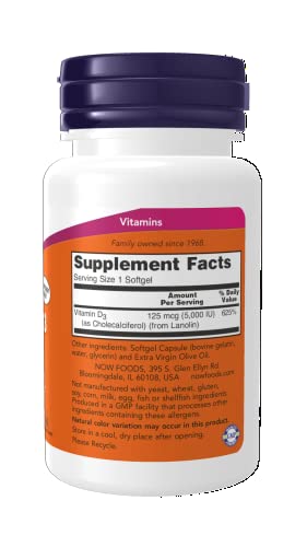 NOW Supplements, Vitamin D-3 5,000 IU, High Potency, Structural Support*, 240 Softgels