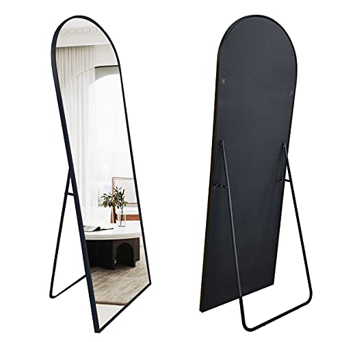 【ARCHED-TOP FRAME DESIGN】The top of the floor mirror is designed with an arched top frame. The mirror is surrounded by an aluminum alloy frame.The frame is very thin,brushed, and more textured. It is very conspicuous in any space and makes your room look tasteful.