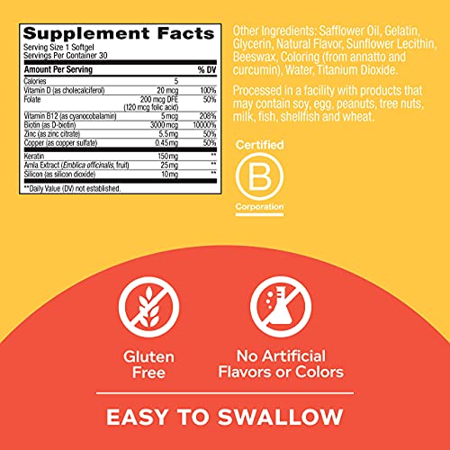 ULTRA SOFTGELS: Our premium Softgel blends are naturally colored, easy to swallow and have a hint of strawberry scent with zero sugar. This hair supplement also comes in a convenient compact package