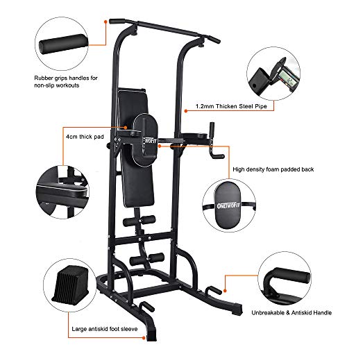 ONETWOFIT Multi-Function Power Tower with Sit Up Bench,Adjustable Height Pull Up Tower Heavy Duty Dip Station Fitness…