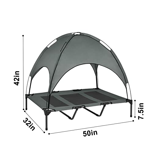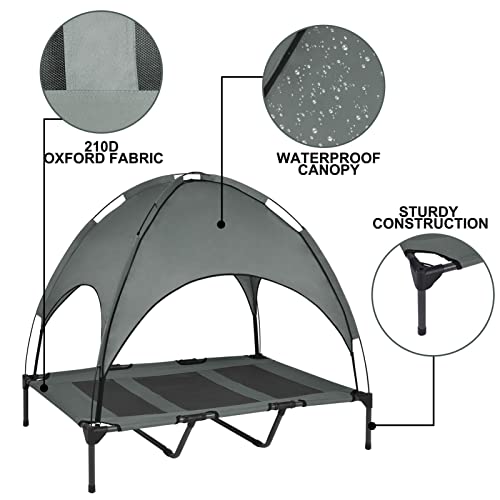 Outdoor Elevated Dog Bed with Removable Canopy, Cooling Raised Pet Cot for Outdoor Camping, Waterproof Canopy, Durable…