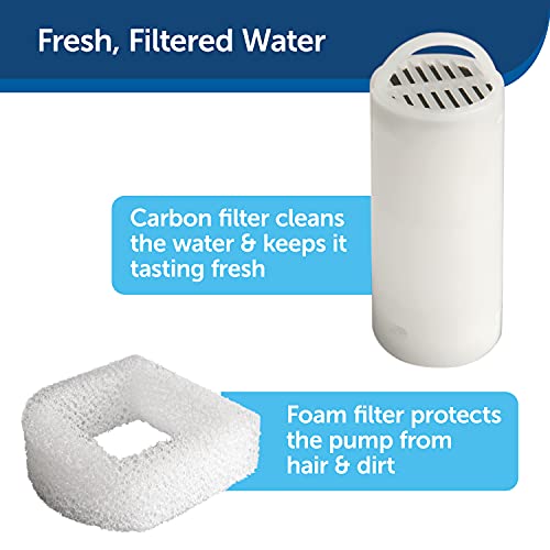 FRESH, FLOWING WATER: Replaceable carbon filter refreshes water and the foam filter catches pet hair and debris to keep your cat’s water clean