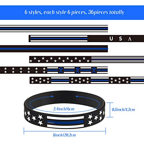36 Pieces thin blue line American flag silicone bracelets rubber wristbands for police officers patriots accessories