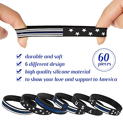 What you get: come with 36 pieces of thin blue line American flag silicone wristbands in 6 styles, each style has 6 pieces, enough quantity for you to use and replace in daily life