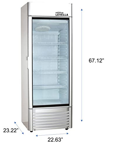 PremiumLevella PRF90DX Single Glass Door Merchandiser Refrigerator -Beverage Display Cooler-9.0 cu ft-Silver