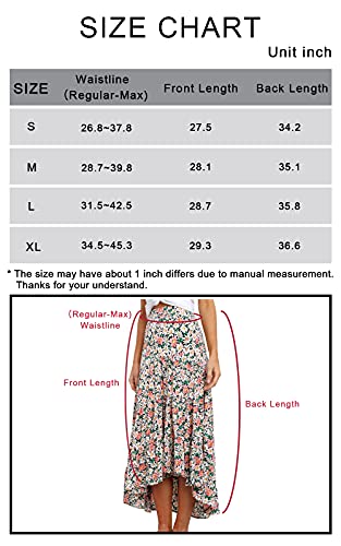 Design: Womens Summer Bohemian Floral Printed Skirt/High Low Hem/Boho Midi Skirt (front)/Maxi Skirt Women (back)/Elastic Waist Skirts For Women/Pleated Skirt/High Waisted Women Skirts/Irregular Hem/Flowy Skirt/Skirts Women Midi Length/Skirt For Women Casual Summer/Summer Vacation Style