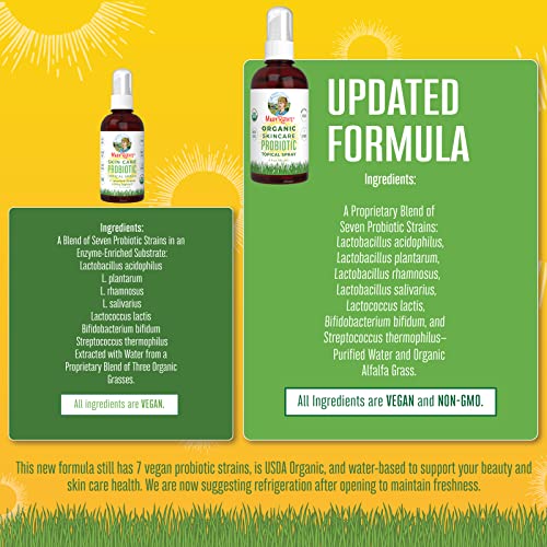 Skincare Probiotic Topical Spray: Our Organic, Liquid, Water-Based Skin Probiotic, Formulated with Beneficial Microbes. Simply spray this proprietary probiotic blend onto your skin! This organic water-based skincare probiotic features a proprietary probiotic blend designed for your skin. Comes in an easy-to-use, convenient liquid spray.