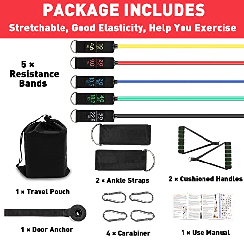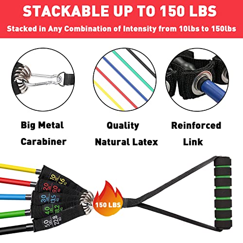 Resistance Bands Set Workout Bands, 150lbs Fitness Bands Exercise Bands with Handles, Door Anchor, Legs Ankle Straps and…