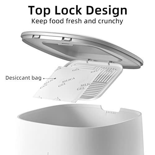 ⭐【Keep Your Pet Healthy】: The parts and stainless-steel feeding bowl of this cat feeder automatic are detachable for thorough cleaning. Built-in desiccant bag with a sealing cover keep food fresh. All we want is to provide your pet a cleaner and healthier living! ROJECO cares and loves your puppy.