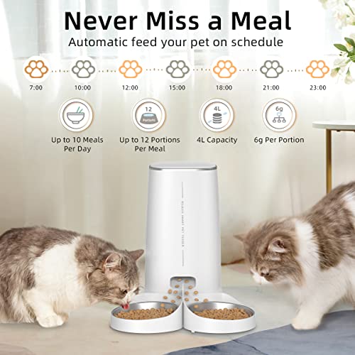 ROJECO Automatic Cat Feeders for 2 Cats, 4L Cat Food Dispenser with APP Control, Double Stainless Steel Bowls, Dual…