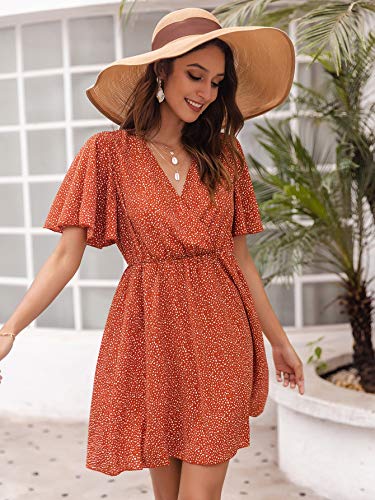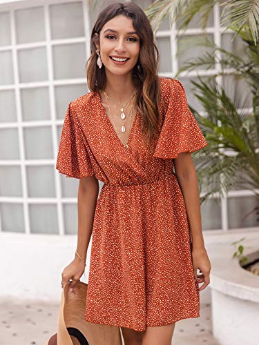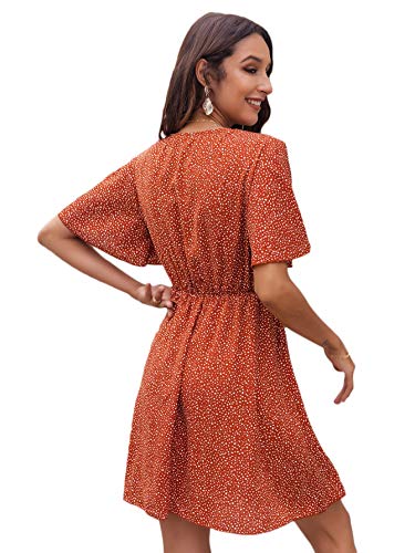 Romwe Women’s Short Sleeve V Neck All Over Print High Waist A Line Summer Short Dress