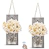 GBtroo Rustic Wall Sconces – Mason Jars Sconce, Rustic Home Decor,Wrought Iron Hooks, Silk Hydrangea and LED Strip…