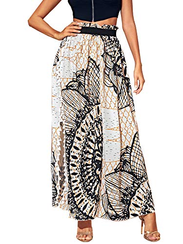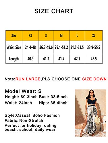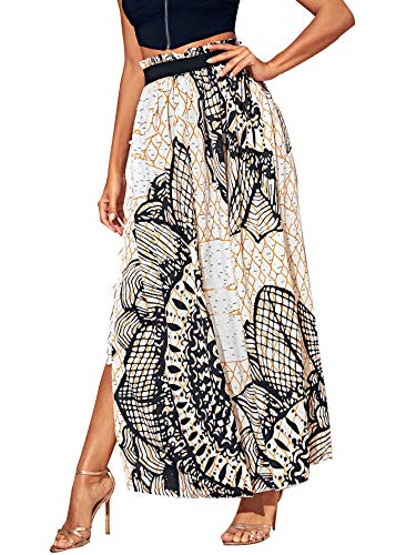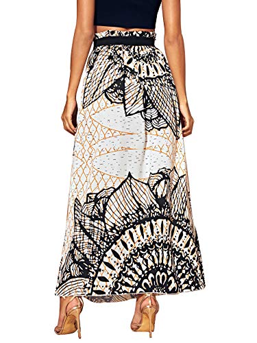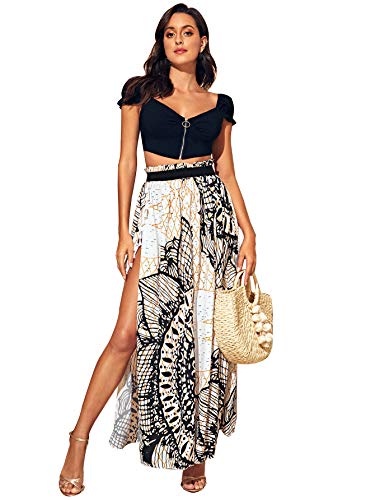 SheIn Women’s Summer Boho Floral Print Fringe Split Thigh Full Length Maxi Skirt
