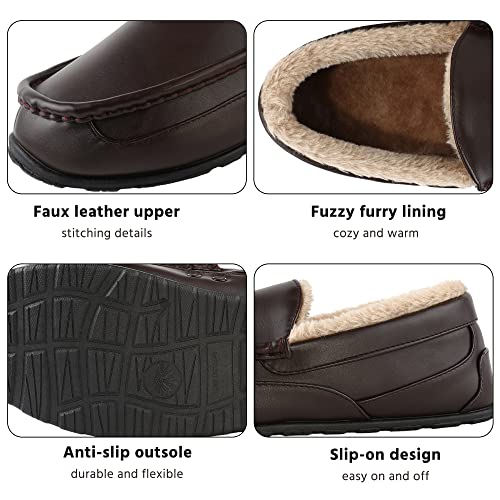 shoeslocker Mens Leather Slippers Casual Slip On Indoor Outdoor Slippers for Men Driving Shoes Moccasins Fashion Slipper