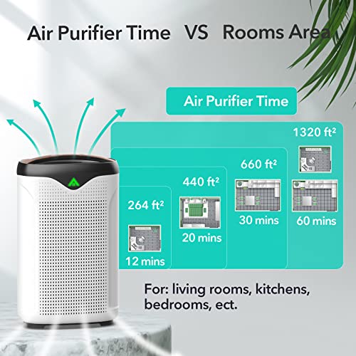 【Best for Large House】Refreshes the air 3 times per hour in a 440 sq ft room, covering up to 1320 sq ft in an hour. The efficient air cleaner allows for a more thorough and rapid purification for a large living room, bedroom, kitchen, and office.