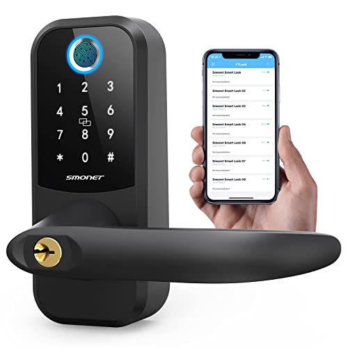 Smart Lock,SMONET Fingerprint Door Lock with Keypad,Keyless Entry Door Lock with Handle,Wireless Electronic Bluetooth…