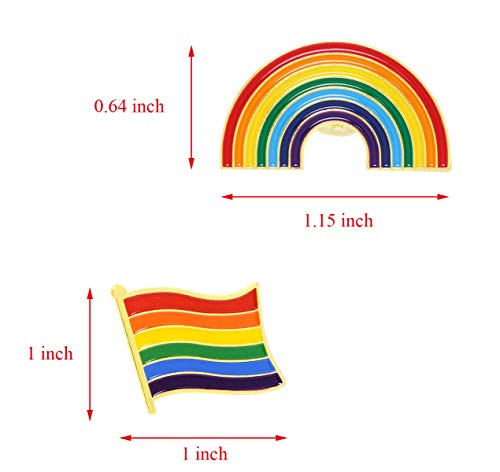 Size – the rainbow pin measure 1.15 inch in length and 0.64 inch in wide, the flag pin measures 1 inch in length and 1 inch in wide